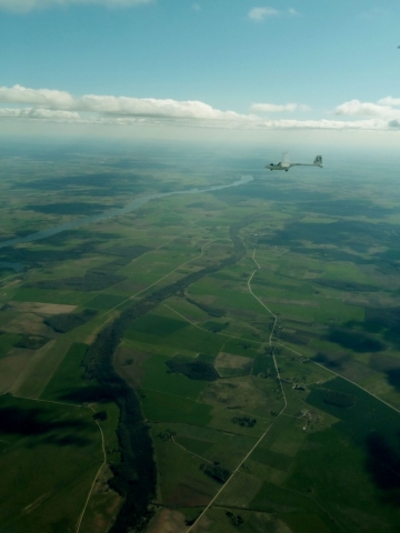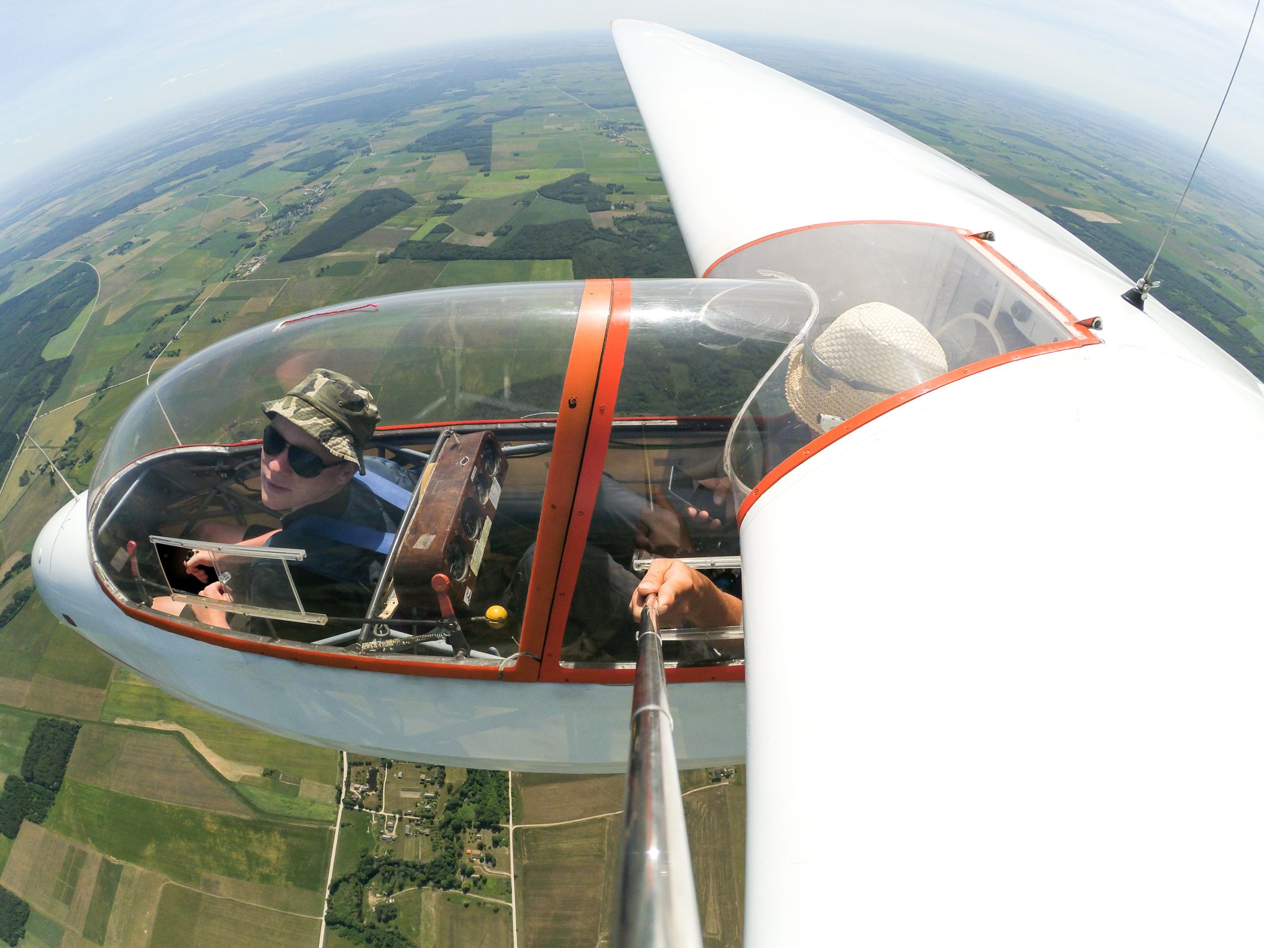 Pirmosios varžybų dienos buvo labai sportiškos, teko slapstytis nuo lietaus ir stipraus vėjo ieškant pastogių. Tačiau viena diena išaušo tinkama pakilimams. Gavome maršrutus, jų įveikimo laikus ir pradėjome kilti. Turiu pripažinti, Biržuose tokiu vėjuotu oru ir taip žemai dar neteko skristi, o dar ir su retro klasės sklandytuvu. Po valandos kančių ieškant nors menkiausio termiko (šiltos, viską paskui save tempiančios, į viršų kyančios oro srovės) netoli aerodromo, stebėdamas, kaip kitų klasių ir mano klasės sklandytuvai tupia naujiems pakilimams, pasiekiau „padą“ (taip vadinama riba, iki kurios gali tą dieną pakilti ir yra debesies apačia). Padas buvo stebėtinai… aukštas. Net 600 metrų. Sklandytuvų kokybė, t. y. tiek kilometrų jis gali nusklęsti iš kilometro aukščio idealiomis sąlygomis be vėjo, yra 28. O diena buvo itin vėjuota, tad vertinti savo galimybes buvo beprasmiška. O aš juk atstovauju Biržams, negaliu pasiduoti. Kirtau starto liniją ir nuskridau pirmojo atsižymėjimo taško link, kuris buvo už 25 km. Tai buvo vienas iš įdomiausių mano skriejimų maršrutu, nes didžiąją kelionės dalį „kabėjau“ 300–500 m aukštyje ir sukdamas ant vis blėstančių pavienių termikų, mačiau žmonių namų kiemus, ką jie veikia, nors sklandytuvu to dar nebuvau matęs, nes skrendame dažniausiai 1300–1800 m aukštyje. Termikai blėso, tad pabaiga buvo nulemta ir žinojau, kad prieš vėją tikrai negrįšiu ten, kur pakilau.